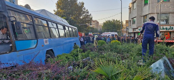 تصادف اتوبوس با چندین دستگاه خودرو و عابران پیاده در میدان شهدا